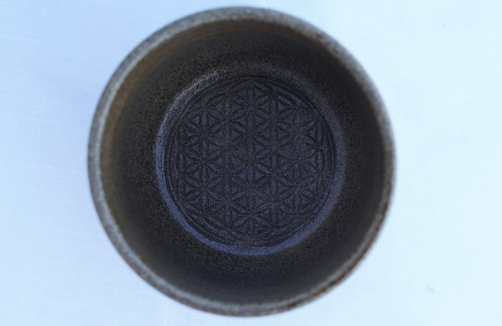 This mug was lovingly handcrafted by me on the potter's wheel. There is a flower of life on the inside of the base and the inside of the cup is glazed with Agnihotra ash glaze. The Agnihotra ash also enhances the cocoa during the ceremony, giving it a hexagonal structure and allowing its healing properties to unfold 100%.
