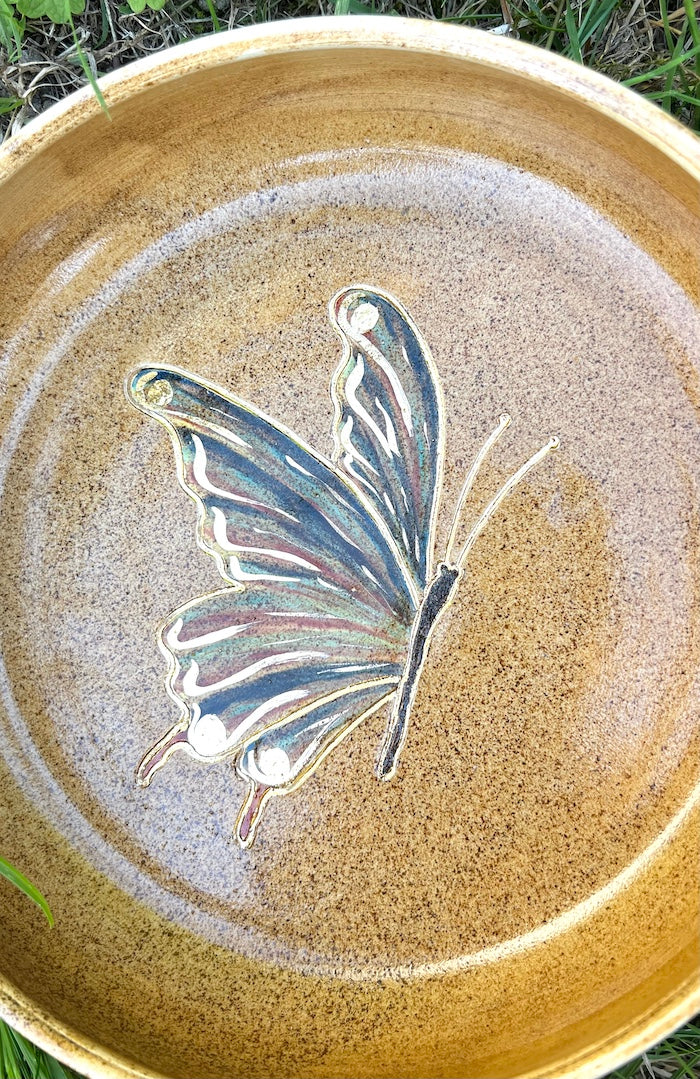 Diese Schale beflügelt dich mit Leichtigkeit und schenkt dir ein Stück mehr Lebensfreude. Er eignet sich perfekt für dein Frühstück, Suppe oder Salat. Sie wurde von mir in liebevoller Handarbeit an der Töpferscheibe gedreht. Der Schmetterling ist per Hand aufgemalt und später nach dem Glasurbrand vergoldet und in einem dritten Brand eingebrandt. Durch die Blume des Lebens innen und die eingebrachte Agnihotra-Asche, ist ein Genuss daraus zu trinken. Die Agnihotraasche ist im Ton und auch in der Glasur enthalten. Die Ascheglasur enthält keine chemischen Nebenstoffe und ist damit vollkommen natürlich. Diese Asche verändert die Kristalle der Getränke im Becher hin zu lebendigen hexagonalen Strukturen (nachgewiesen mit Kristallfotografie nach Masaru Emoto) macht sie so für den Körper besser verwertbar. Die Asche soll sogar dazu beitragen Schadstoffe durch Umwandlung zu neutralisieren. Lies gern hier mehr zur Wirkung der Lebensgefaesse-Agnihotra-Keramiken