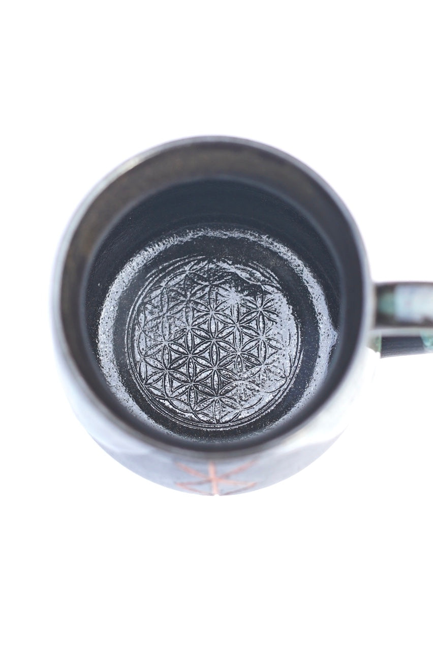 Durch die Blume des Lebens innen auf dem Tassenboden und die eingebrachte Agnihotra-Asche, ist ein Genuss daraus zu trinken. Die Agnihotraasche ist im Ton und auch in der Glasur enthalten. Die Ascheglasur enthält keine chemischen Nebenstoffe und ist damit vollkommen natürlich. Diese Asche, sowie die Blume des Lebens verändern die Kristalle der Getränke in der Tasse hin zu harmonischen hexagonalen Strukturen (nach Masaru Emoto), die sie für den Körper besser verwertbar machen. Die Asche soll sogar dazu beitragen Schadstoffe durch Umwandlung zu neutralisieren.